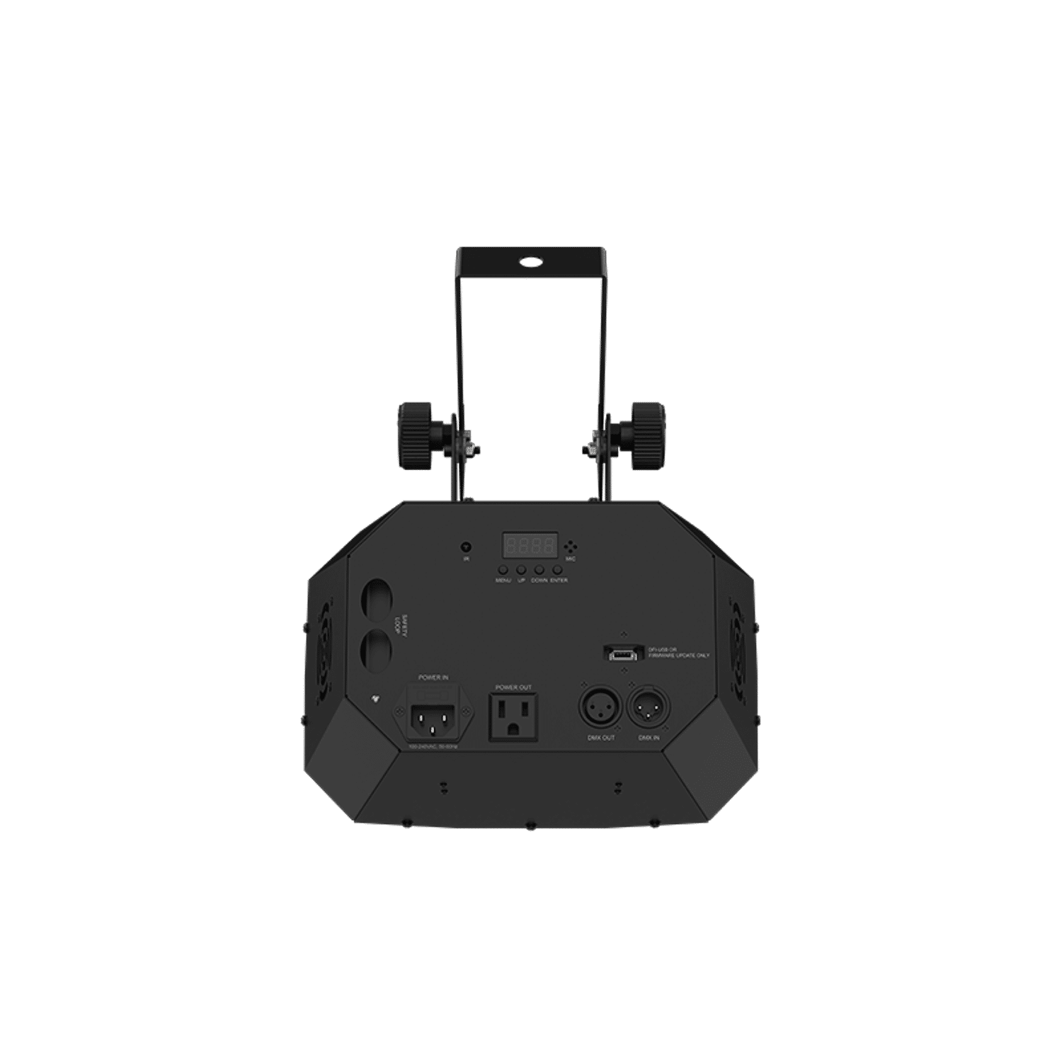 - Aansluitingen: DMX in/out, voeding 100-240V