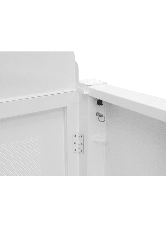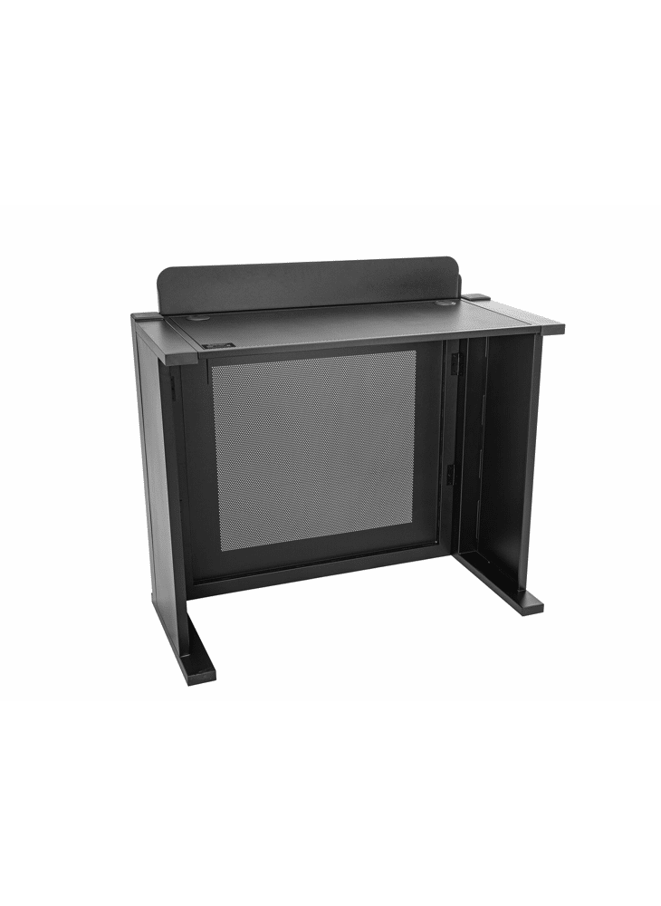 Dankzij het slimme inklapbare ontwerp staat hij binnen enkele minuten klaar voor gebruik. Geen ingewikkelde onderdelen, geen frustratie: uitklappen, neerzetten, apparatuur erop en gaan! Het stevige metalen frame en het geperforeerde frontpaneel zorgen voor een betrouwbare constructie die zelfs tijdens intensieve evenementen rotsvast blijft staan.