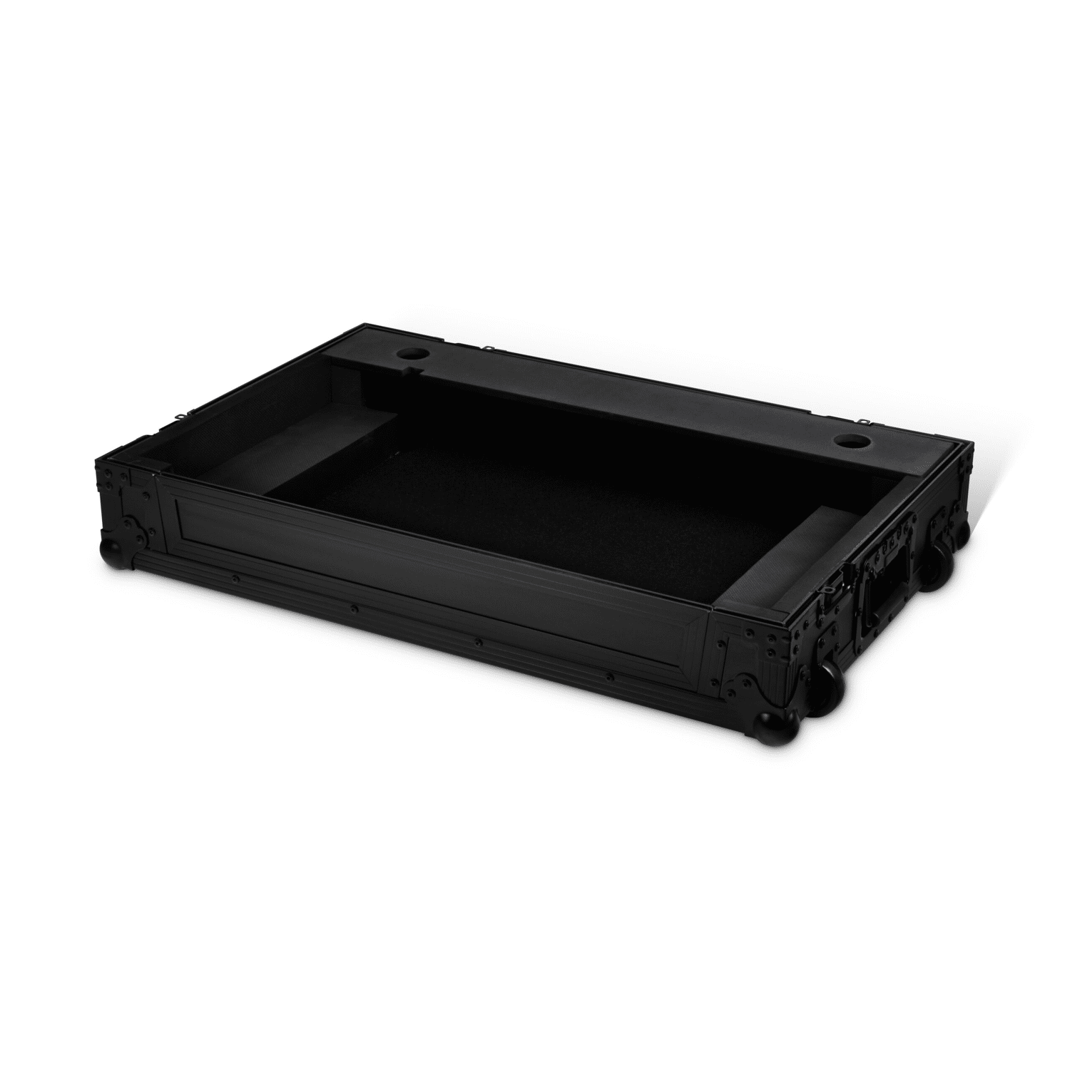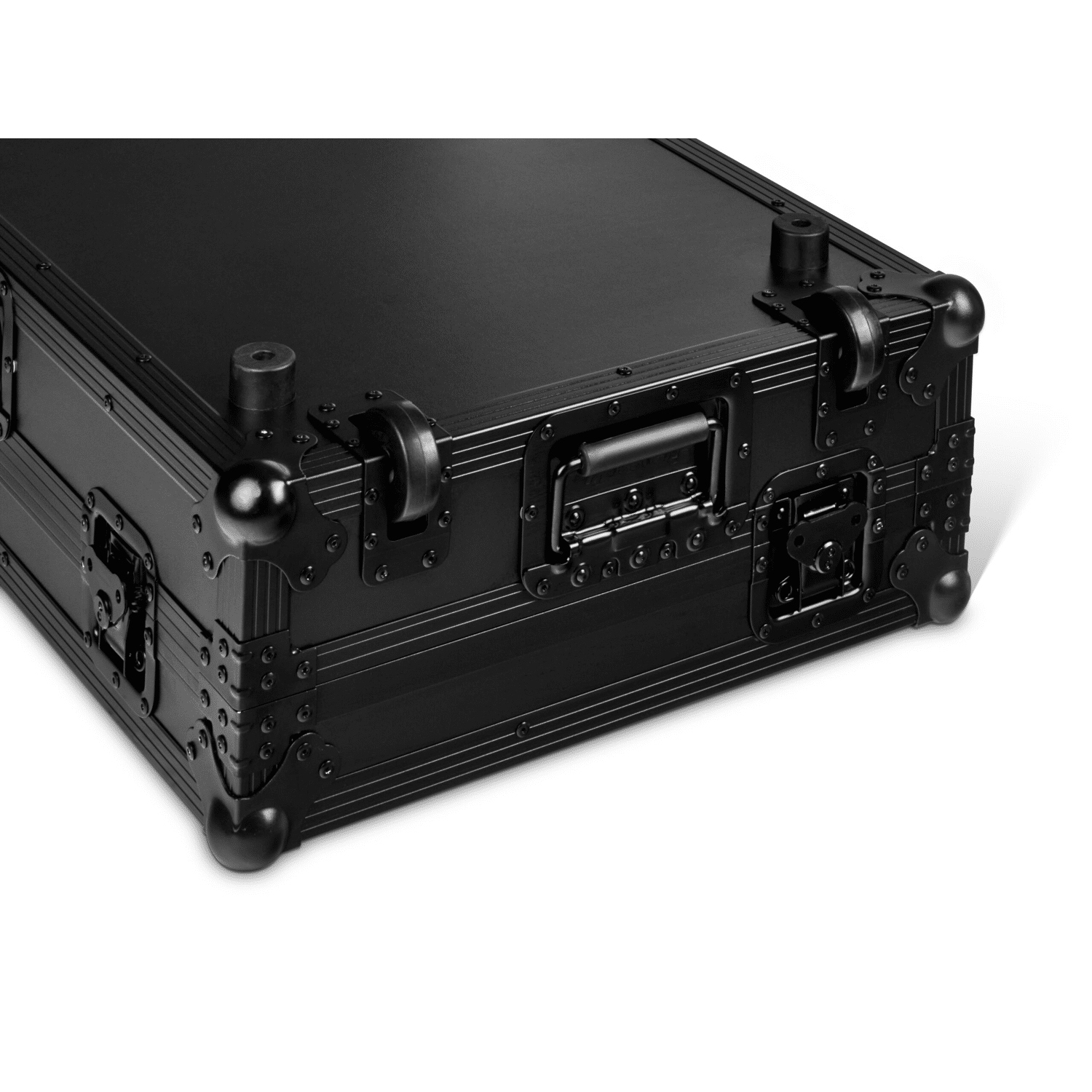 De zwarte Pioneer DJ FLT-REV7 flightcase is volledig op maat gemaakt voor de Pioneer DJ DDJ-REV7. Het mooie witte Pioneer DJ logo prijkt trots op het deksel van deze anders volledig zwarte case. Alle sloten, handvaten, aluminium profielen, wielen en rubberen voeten zijn in het diepzwart. Ook de multiplex behuizing is voorzien van een strakke laag zwart. Het geheel ziet er absoluut stoer uit en geeft een zeer professionele indruk.
